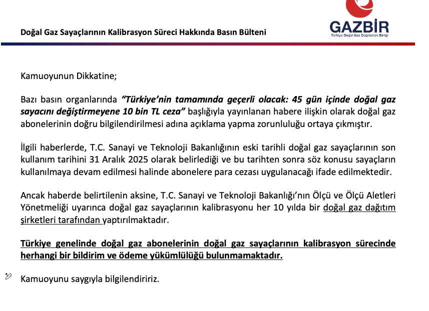 Doğal Gaz Sayaçlarının Kalibrasyon Süreci Hakkında Duyuru